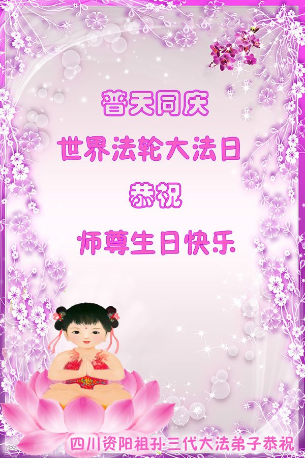 四川資陽一家三代大法弟子恭賀世界法輪大法日並敬祝師尊生日快樂!