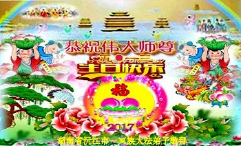 尊敬的師父:您辛苦了!在這寰宇同慶普天同歡的五一三神聖節日裏,沅江市大法弟子向您九叩首!叩拜偉大師尊生日快樂!叩謝慈悲師父傾心救度!我們能成為師父正法時期的大法弟子,是最大的榮幸。請您放心,不管未來時日長短,我們一定在師父為我們早已鋪就好的修煉大道上奮起直追:學法、修心、救人步不停,精進、精進、歸真猛精進!唯有紮紮實實做好三件事,不負眾望多救人,才能讓師父少一些操心,多一點安慰!才是真正以虔敬的心謝師恩!