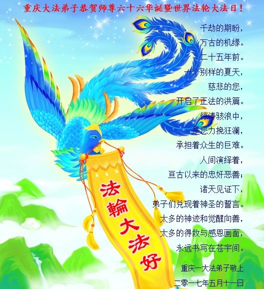 重慶一大法弟子恭賀師尊華誕暨世界法輪大法日!