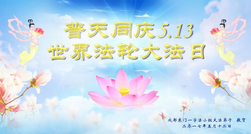 四川省成都東門一學法小組恭賀五﹒一三世界法輪大法日!