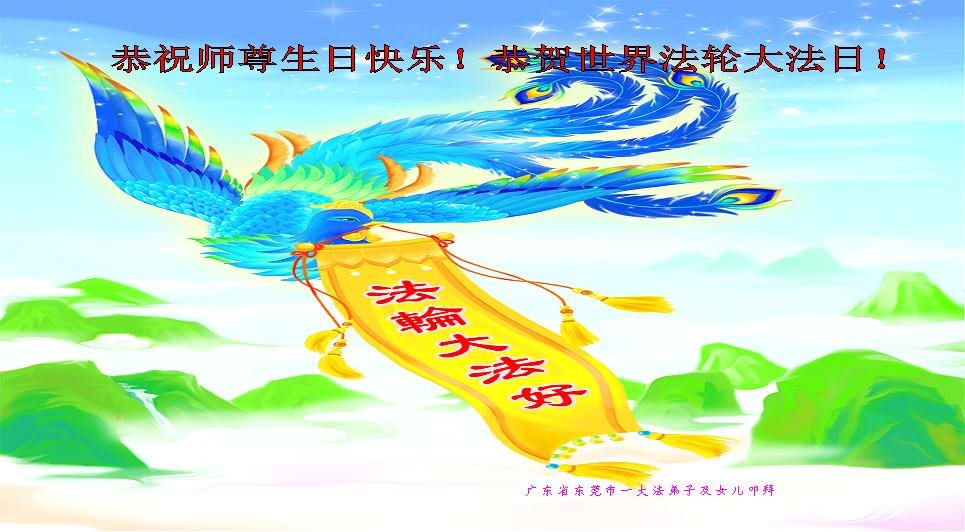廣東省東莞市一大法弟子及女兒恭祝師尊生日快樂!恭賀世界法輪大法日!