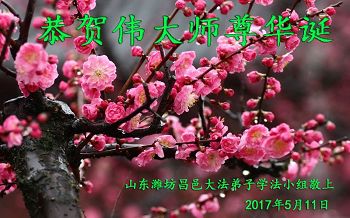 山東濰坊昌邑市學法小組大法弟子恭賀偉大師尊華誕!