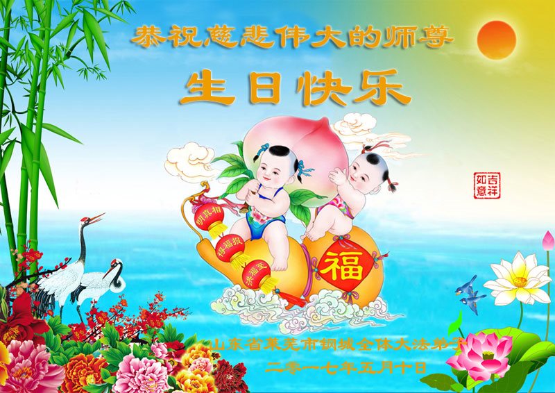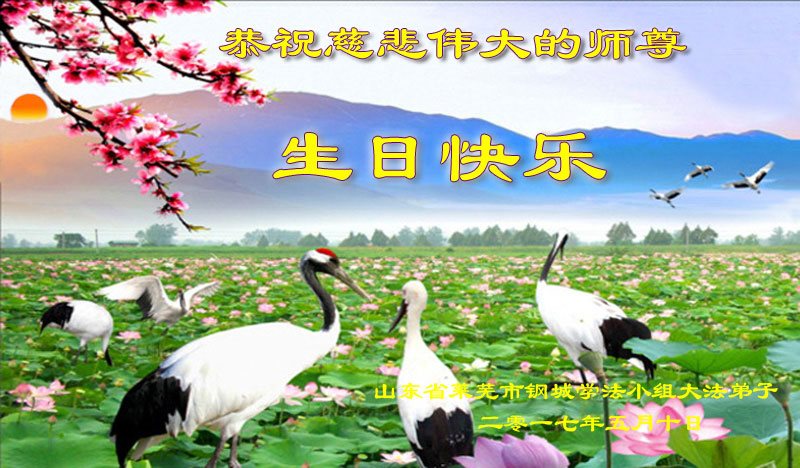 山東省萊蕪市鋼城學法小組大法弟子恭祝慈悲偉大的師尊生日快樂!