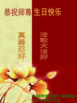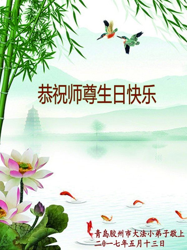 山東省青島市膠州市全體大法弟子恭祝師尊生日快樂!