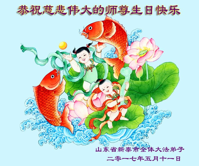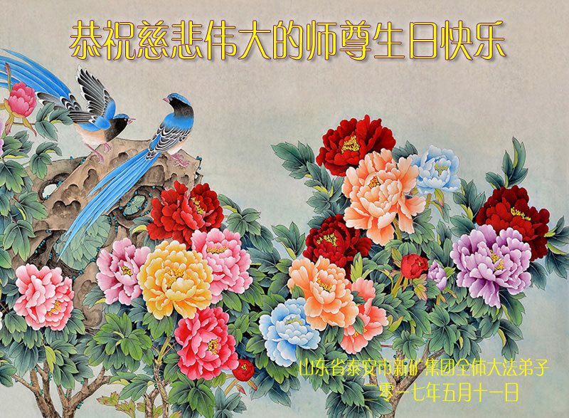 山東省泰安市新礦集團全體大法弟子恭祝慈悲偉大的師尊生日快樂!同慶世界法輪大法日!