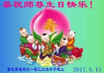 重慶市潼南區一家三大法弟子恭祝慈悲偉大的師尊生日快樂!