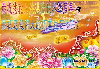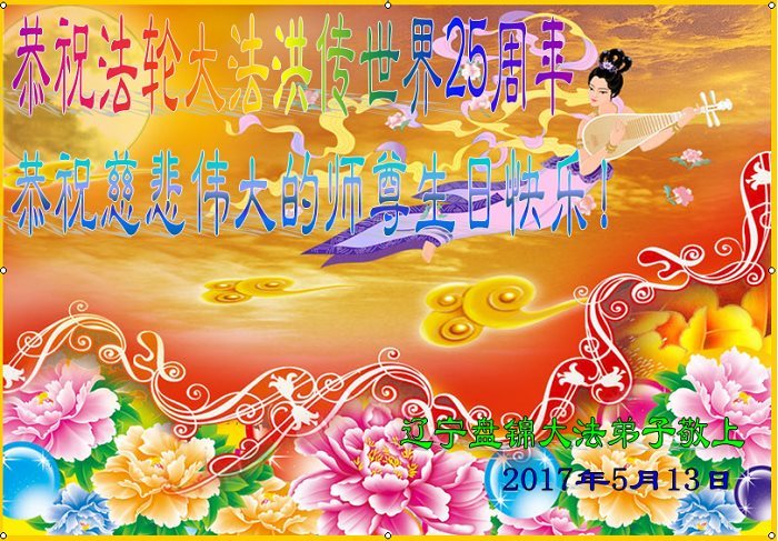 遼寧盤錦大法弟子恭祝法輪大法洪川世界二十五週年!恭祝偉大的師尊生日快樂!
