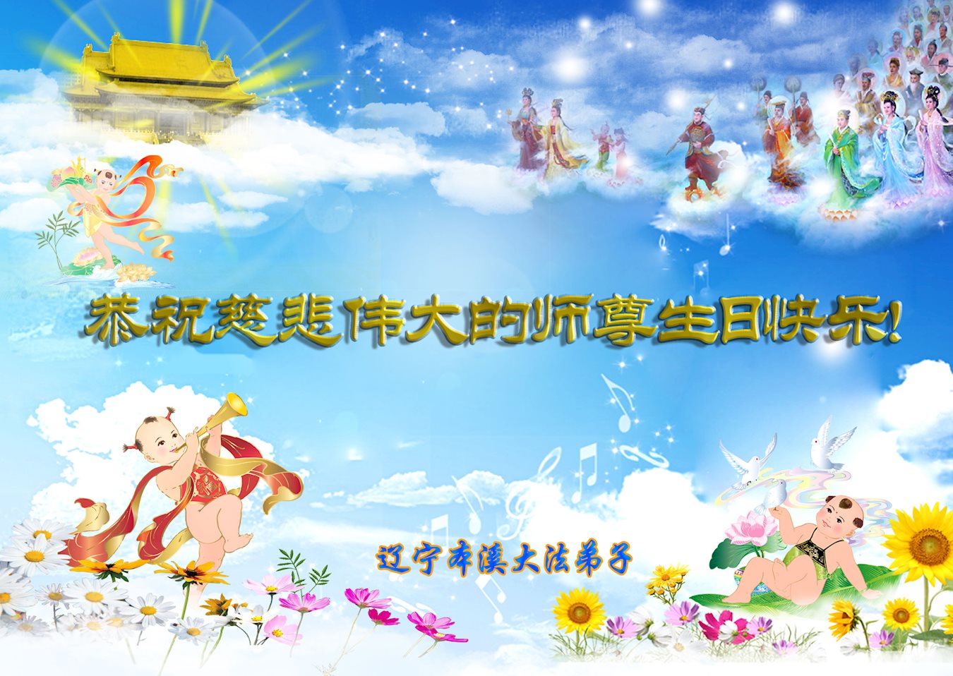 遼寧省盤錦全體大法弟子遙祝師尊生日快樂!叩拜師尊的慈悲救度!