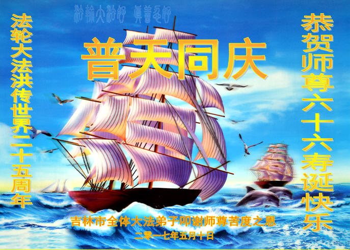 吉林市全體大法弟子恭祝慈悲偉大的師尊生日快樂!普天同慶法輪大法洪傳世界二十五週年!