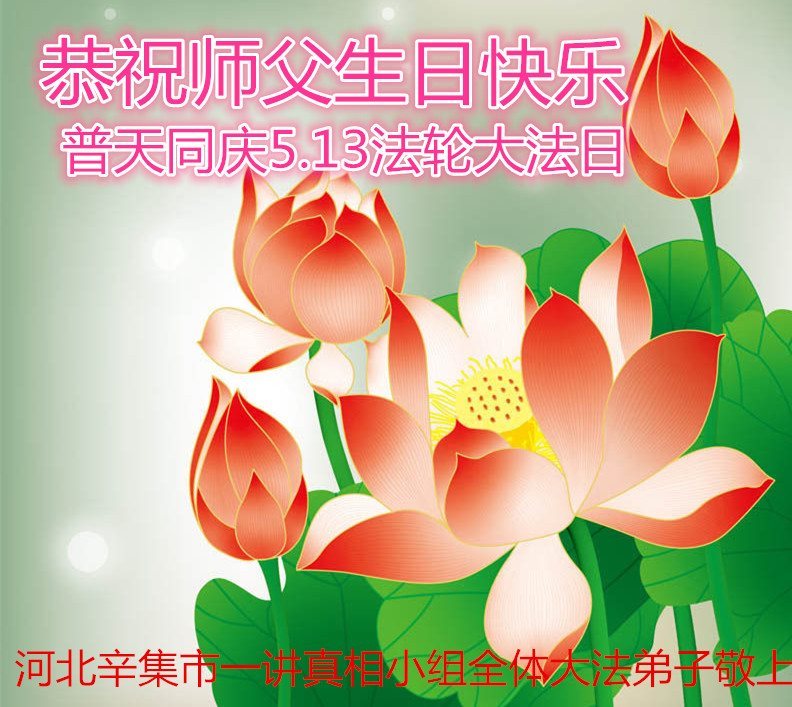 河北石家莊市辛集市大法弟子一講真相小組恭祝慈悲偉大的師父生日快樂!慶祝5.13世界法輪大法日!