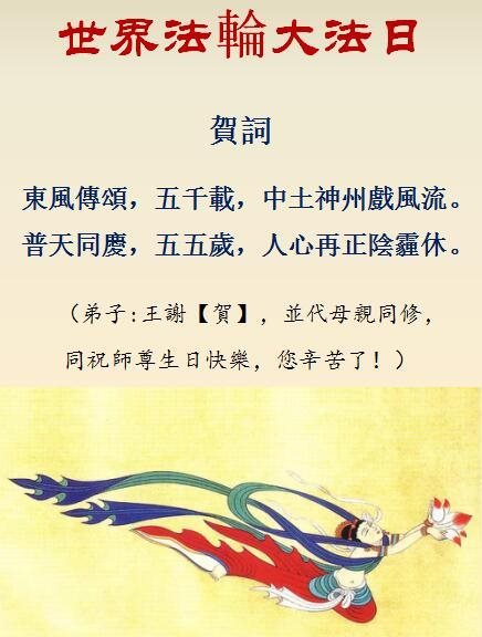 敬祝法輪大法師父生日快樂!恭祝法輪大法洪傳二十五週年。
