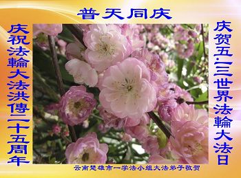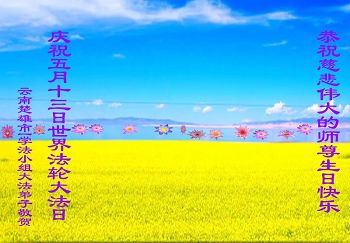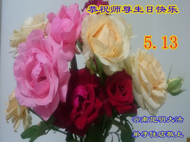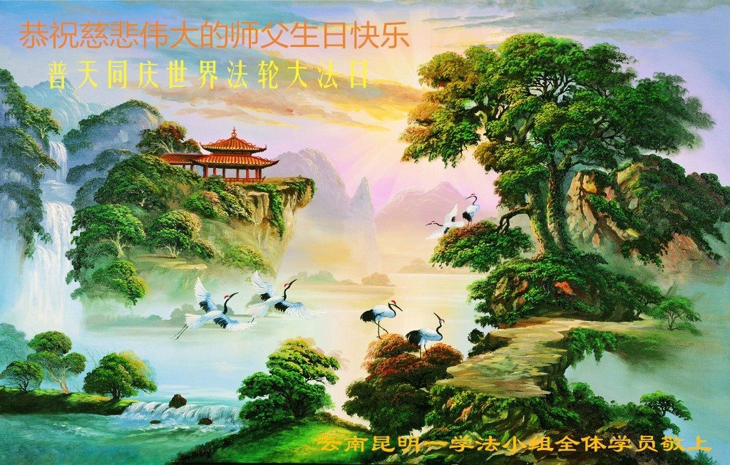 值此2017年世界法輪大法即將到來之際,雲南一學法小組全體學員恭祝慈悲偉大的師父生日快樂!與世界法輪大法學員同祝同頌世界法輪大法日!特別想道一聲師父您辛苦了!弟子們讓您操勞了,弟子們唯有精進、再精進,回報師恩!
