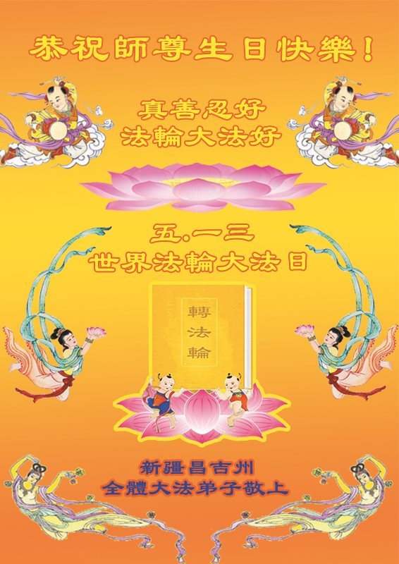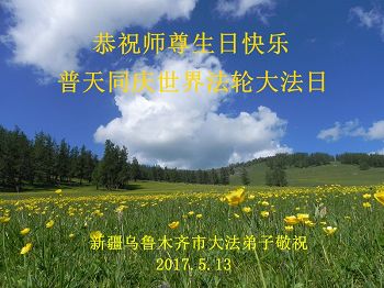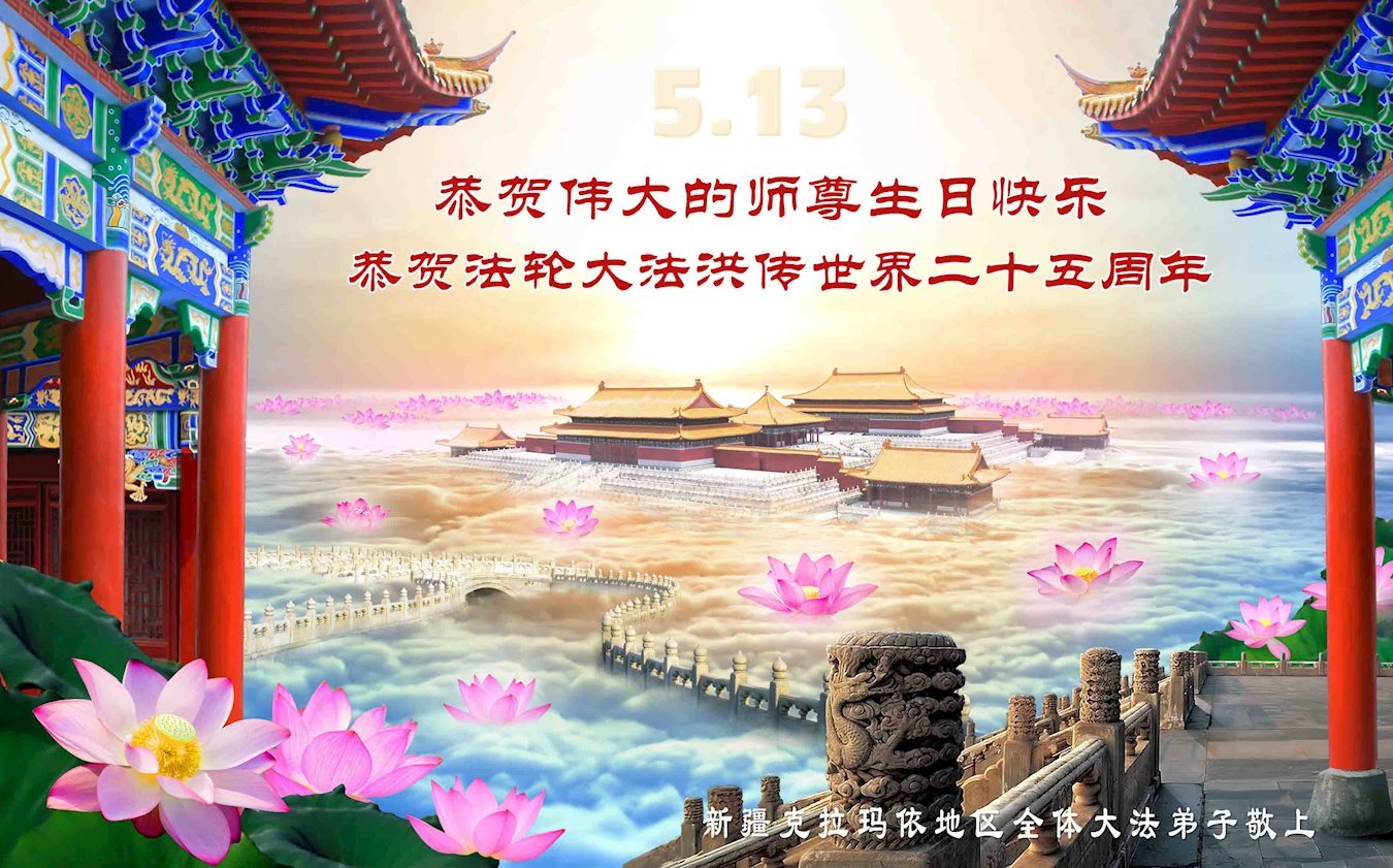 新疆克拉瑪依全體大法弟子恭賀偉大的師尊生日快樂!恭賀法輪大法洪傳世界25週年!