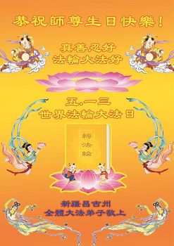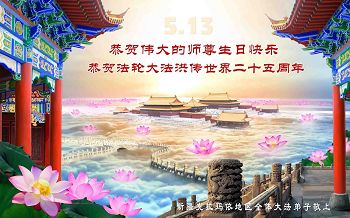 法輪大法洪傳二十五週年紀念日來臨之時,弟子恭祝慈悲偉大的師尊生日快樂!弟子一定要努力修去人心,做好三件事。珍惜這萬古不遇的修煉機緣。師尊辛苦了!