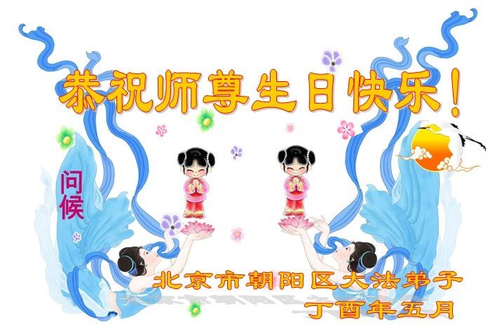 中國大陸九名大法弟子祝師父生日快樂!對不起師父我們做的不好,給大法抹黑了。請師父原諒。祝師父生日快樂!我們一定要做好請師父加持!