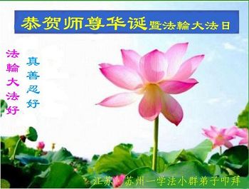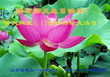 我們學法小組十幾人,恭祝慈悲偉大的師父生日快樂!祝賀法輪大法日。