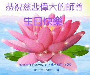 我們一家三口大法弟子恭祝師尊生日快樂!謝謝師尊對我們全家人的呵護!