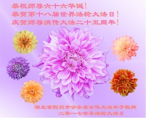 湖北省荊州市公安縣全體大法弟子恭祝師尊六十六華誕!恭賀第十八屆世界法輪大法日!慶賀師尊洪傳大法二十五週年!