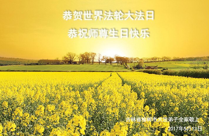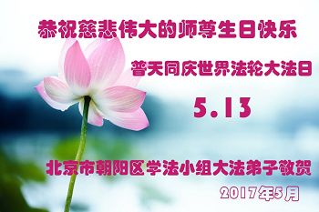 5月13日是師父陽曆的生日,弟子代表我們學法小組全體同修及我的家人祝師尊生日快樂!我們小組全體同修在正法路上聽師尊的話互相配合,精進!精進!再精進!