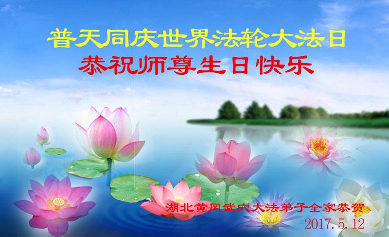 湖北黃岡武穴法輪大法弟子全家普天同慶5.13世界法輪大法日!恭祝偉大的師尊生日快樂!