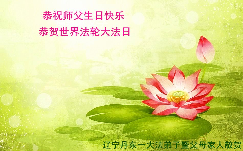遼寧丹東一大法弟子及父母家人恭祝師父生日快樂!恭賀世界法輪大法日!