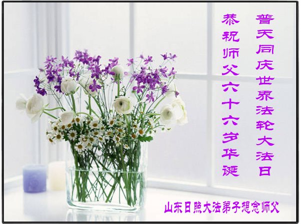 我是山東萊蕪大法弟子,由於弟子不精進經歷了兩次生死大關,都在師父的慈悲呵護下有驚無險的走了過來,師尊不知為我這不爭氣的弟子又承受了多少。宇宙在成住壞滅的規律中走向壞滅的最後時刻,師尊為拯救大穹,為宇宙眾生操盡了心,付出了您的所有,師尊您承受的太多太多!弟子唯有精進,做好三件事以報師恩。在師尊華誕暨世界法輪大法日這普天同慶的日子裏,弟子恭祝師父生日快樂!