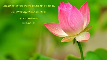 今年的「五一三」是法輪大法傳世二十五週年,又是偉大師尊六十六歲華誕,在此,「師父恩賜我們偉大的法,偉大的法造就了我們大法弟子,大法弟子們從體弱多病到身心健康、道德回升,按照法的要求做好人、更好的人。每一步的提高都離不開師尊的慈悲點悟、精心看護。」 我們無比感恩師尊的慈悲救度,要更加珍惜這萬古不遇的修煉機緣,學好法,精進不懈怠,走好最後的路,跟師父回家。