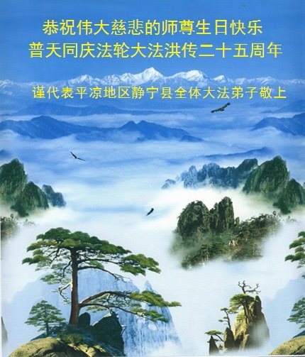 值此「5.13」世界法輪大法日之際,廣安一大法弟子及家人恭賀法輪大法洪傳二十五週年暨偉大師尊華誕。我將堅信師尊,做一個合格的大法弟子。家人按照師尊要求做一個社會上的好人。