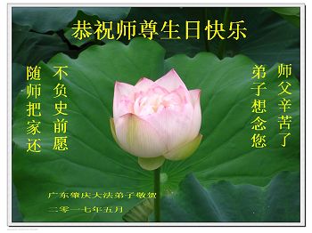 師父您好,您辛苦了!恭祝慈悲偉大的師父生日快樂!普天同慶世界法輪大法日,祝賀法輪大法洪傳世界二十五週年。