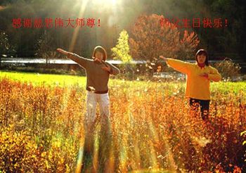我們夫妻跟隨著師尊走過了風風雨雨的艱難歲月,今年正法已經進入十八年春了。在這最後的日子裏,我們一定多學法、多去執著心,抓緊時間多救人,走好最後的路。圓滿隨師還。師尊您辛苦了!