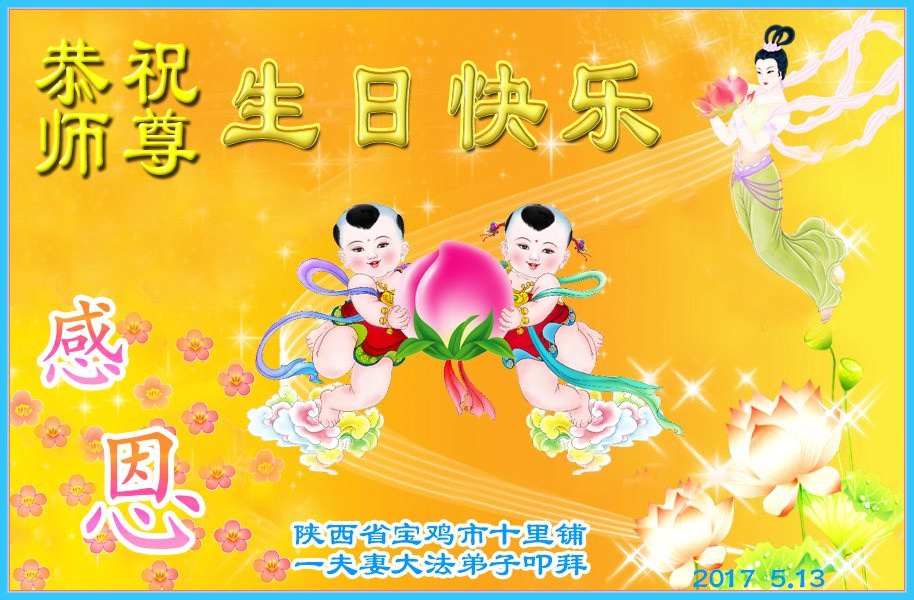 陝西省寶雞市十里鋪夫妻大法弟子5.13恭祝師尊生日快樂!