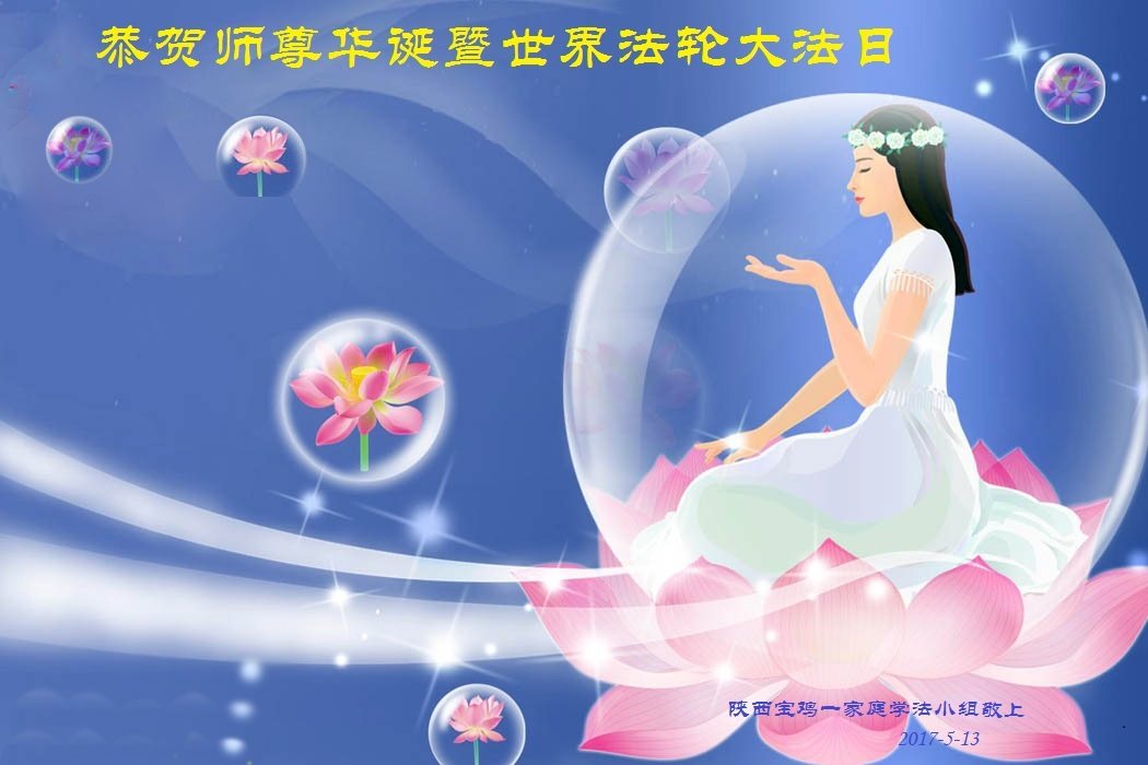 陝西寶雞市大法弟子恭祝師父生日快樂!恭賀世界法輪大法日!
