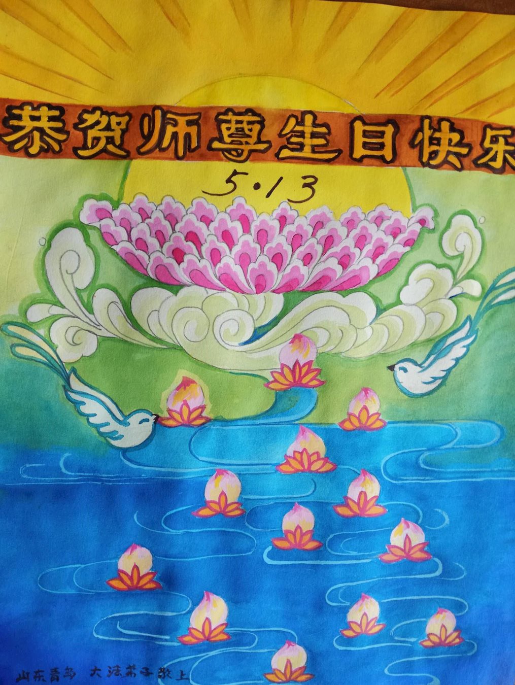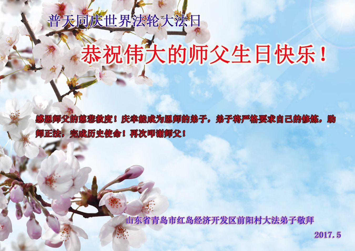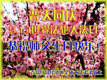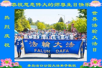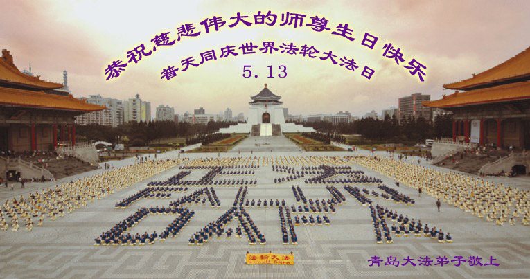 山東青島市黃島新區大法弟子恭祝師父生日快樂!慶賀世界法輪大法日!
