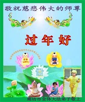 河北省廊坊市一學法小組七個大法弟子向慈悲偉大的師尊拜年!
