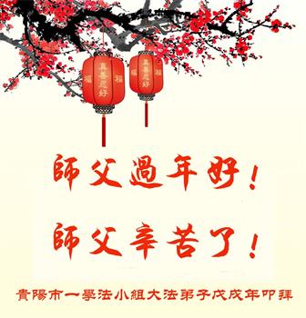 炎黃子孫承傳的是神傳文化,而在當下卻被共產邪靈踐踏,世風日下,人心不古,此時幸得救世的大法,使我從濁世中幡然猛醒,萬分感恩慈悲偉大的師父!值此中國新年之際,敬拜師父,恭祝師父新年快樂!珍惜師父延續來的寶貴時間,多向內找,修好自身,做好三件事。