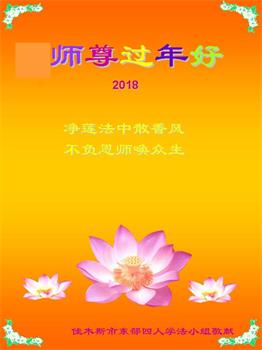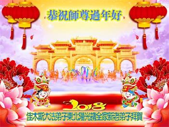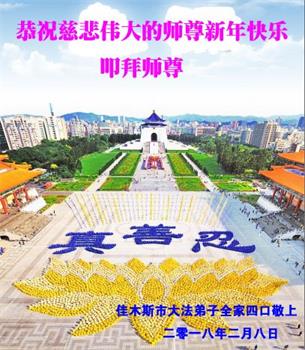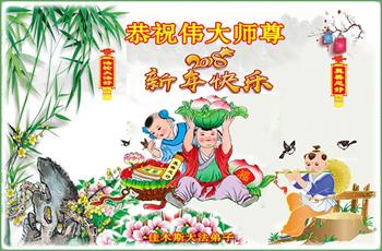 佳木斯市樺川縣一大法弟子及家人恭祝慈悲偉大的師尊新年快樂!在新的一年裏弟子要更加精進,讓師尊放心。