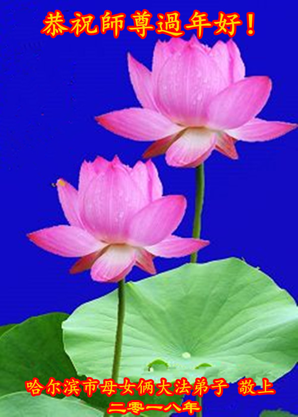 黑龍江哈爾濱市母女倆大法弟子恭祝慈悲偉大的師尊過年好!