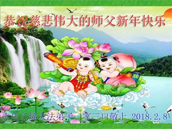 在新年即將到來之際,我們一家三口大法弟子恭祝慈悲偉大的師尊新年快樂!