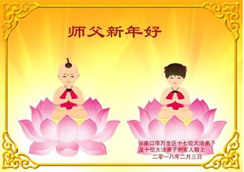 河北省張家口市下花園區大法弟子夫婦給師父拜年!