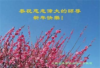 恭祝慈悲偉大的師尊新年快樂!新的一年裏,我們要繼續做好三件事,不辜負師尊的救度之恩,精進再精進,圓滿跟師尊回家!全體弟子合十跪拜!