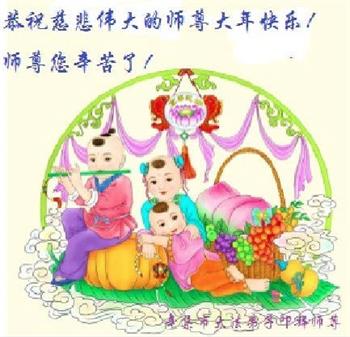 我們一家五口大法弟子向師尊拜年!祝師尊過年好!在新的一年裏,我們要學好法,做好三件事,多救人,跟師尊回家。一家五口弟子叩拜師尊!