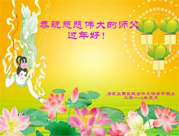河北省石家莊第二幹休所全體大法弟子給慈悲偉大的師尊拜年,恭祝師尊過年好!
