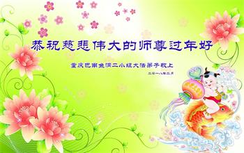 重慶市巴南區魚洞學法一小組大法弟子恭祝師尊新年快樂!