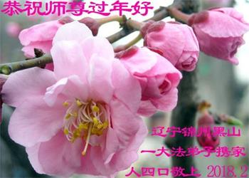 遼寧錦州黑山一大法弟子及全家五口恭祝師尊過年好!