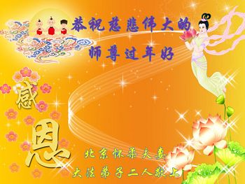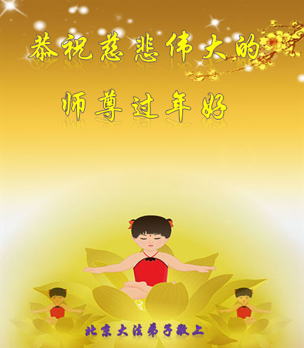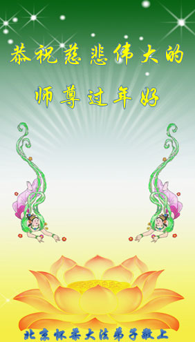 我是一名大法弟子的孩子,我非常相信法輪大法,相信善惡有報。我非常感激大法師父傳出的高德大法使億萬人受益,使人類的道德回升。在新春來臨之際,祝大法師父節日快樂!