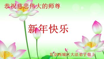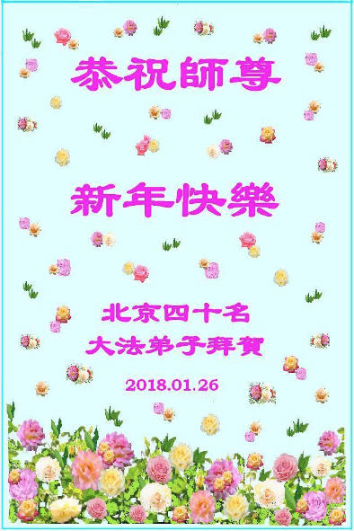 我們懷著崇敬的心情敬祝師尊新年快樂!大陸人在邪黨幾十年邪黨文化的洗腦毒害下,心靈都受到不同程度的變異、扭曲,我們也不例外。是偉大的師尊用洪大的慈悲,寬廣的胸懷喚醒我們的良知、本性,再給我們無比珍貴的法輪、修煉機制、種子及智慧,才使我們在邪惡的十幾年的迫害和各種魔難中走過來。是師尊用心血一路細心看護著我們,替我們承受了無邊的業力和巨大的痛苦,才使我們錘煉了意志,清洗了靈魂,純潔了身心。隨著修煉的深入,法理越來越清晰,越學越感到大法的無比珍貴!越學越感恩師尊的苦心救度!越學越堅定修好自己,做好三件事的決心!緊跟師尊返回家園!
