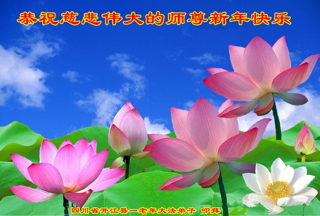 四川省達州市開江縣一老年大法弟子恭祝慈悲偉大的師尊新年快樂!
