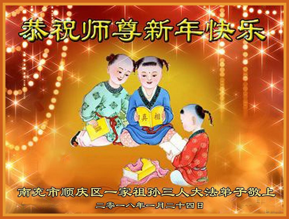 四川南充市順慶區一家祖孫三人大法弟子恭祝師尊新年快樂!