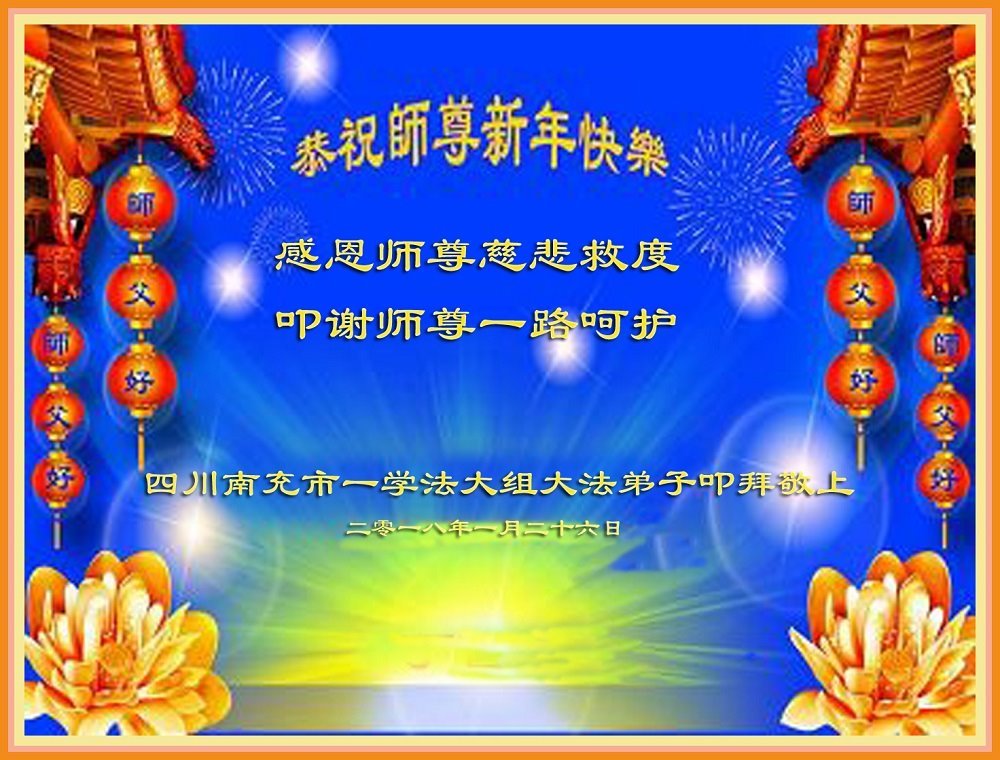 四川南充市東南城區全體大法弟子恭祝師尊新年快樂!