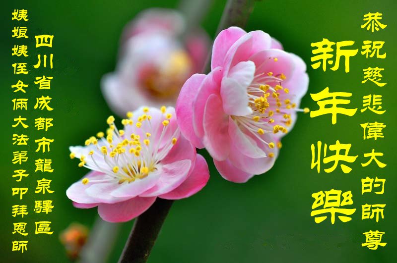 四川省成都市龍泉驛區姨娘姨姪女倆大法弟子恭祝慈悲偉大的師尊新年快樂!